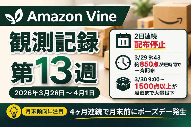 Amazon Vineの配布観測ログや月カレンダーをまとめたページはこちら